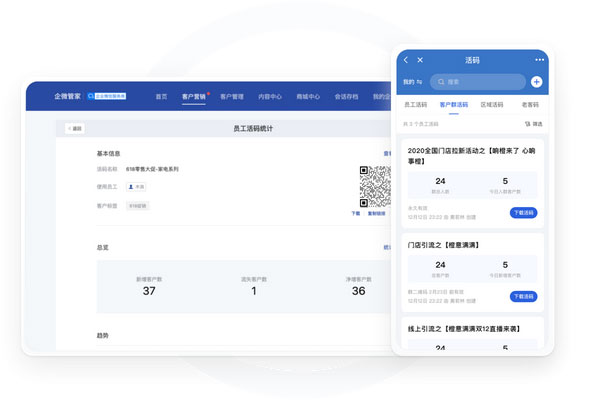 可以按照职工活码、意向客户群活码等的方式引流来店客源渠道的用户留存率的至店内工厂微信微信,并可以按照实用作业核裂变等线上营销的方式,迅速的为工厂引致越来越多的意向客源,有助于于下一步通过运维转变成