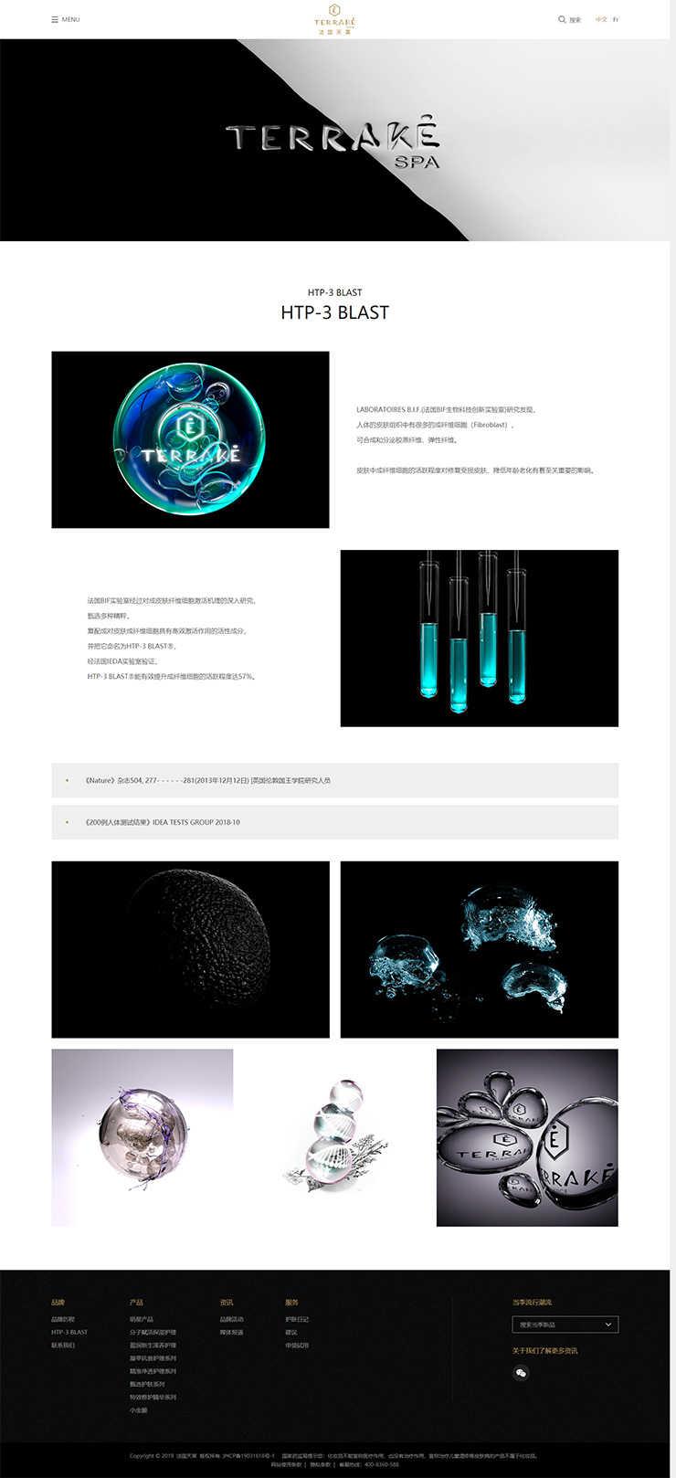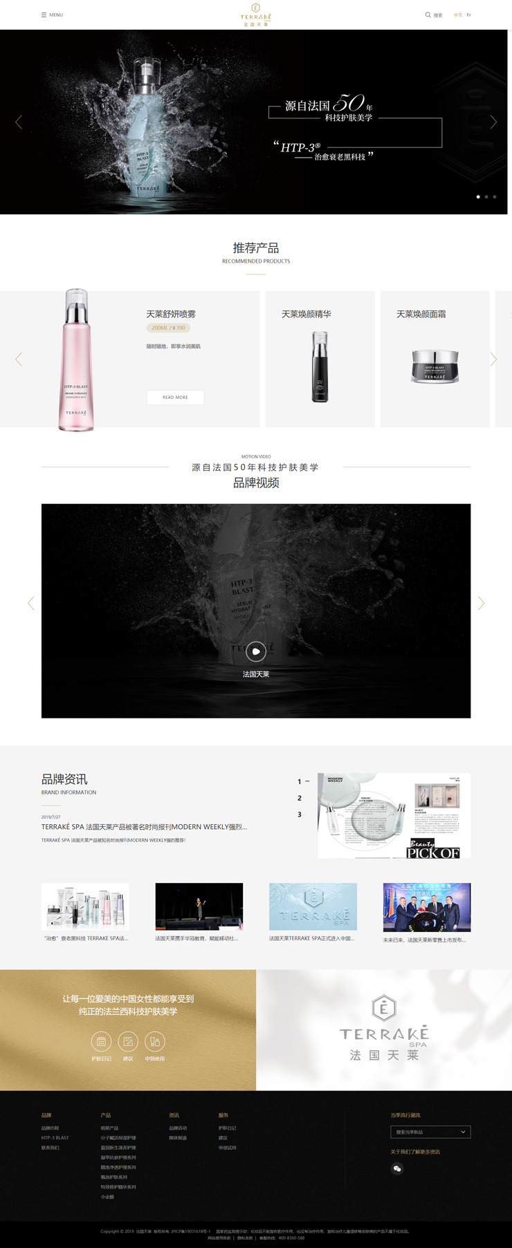 中法双语言网站自由切换,给予不同国家浏览者无障碍阅读,简约网站设计,更容易突出产品,整个网站简约大气,与品牌对外形象保持一致。